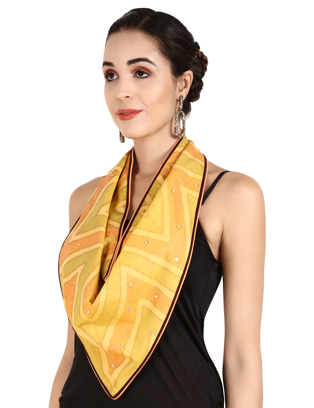 Style this One of a Kind scarf scarf with any outfit to enhance your overall look. It has rayon & satin lining with orange foil piping. It is finished off with brown foil.