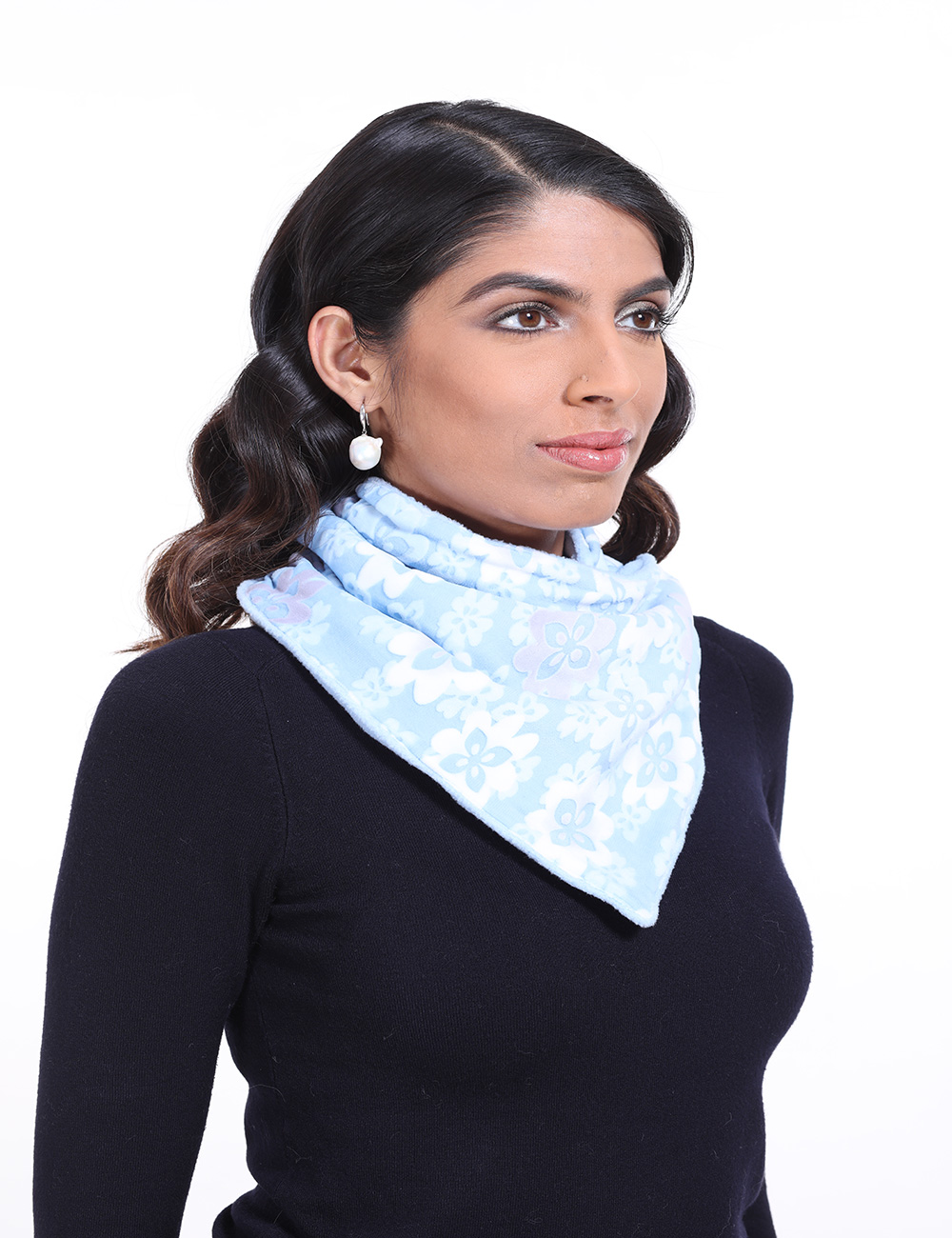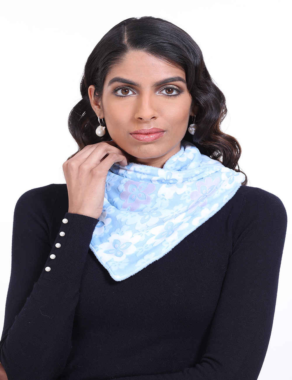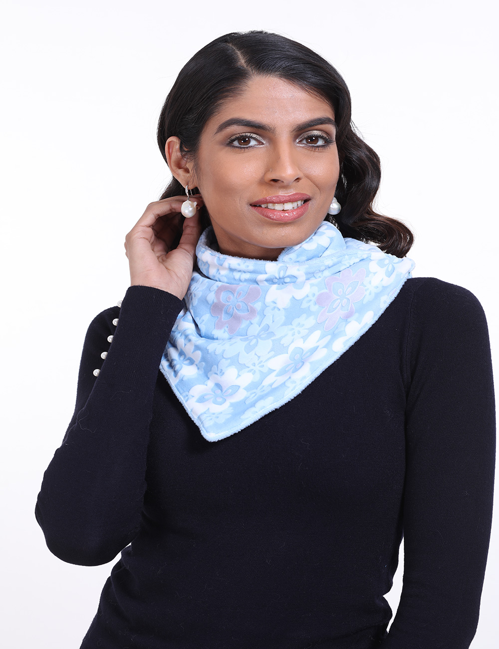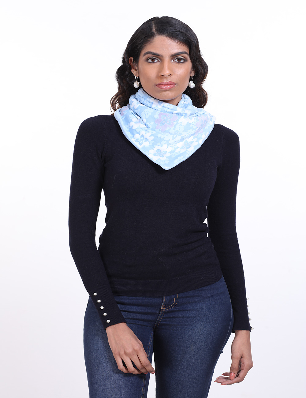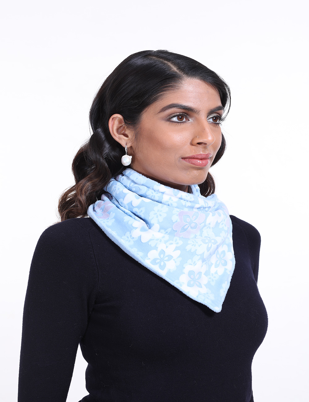 This scarf gives you the classic look that adds elegance to your outfit. This elegant One of a Kind handmade scarf is made of baby blue velvet. It has baby blue fleece lining with all over coding.