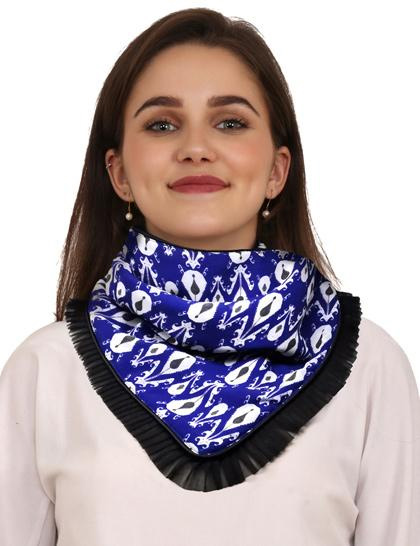 This vibrant One of a Kind handmade georgette winter scarf has rayon & fleece lining. It has all over coding which is finished off with black net frill border.