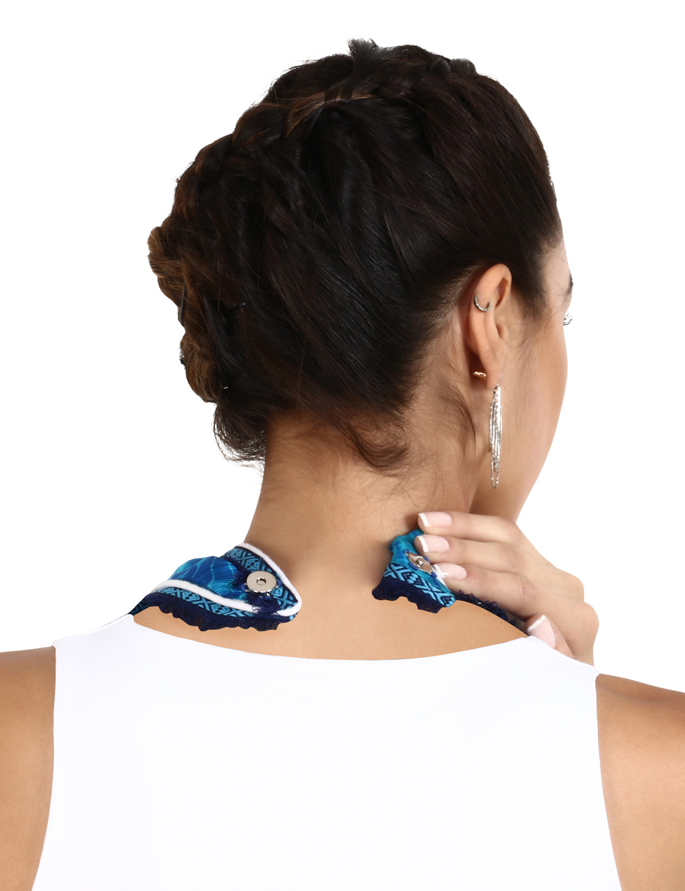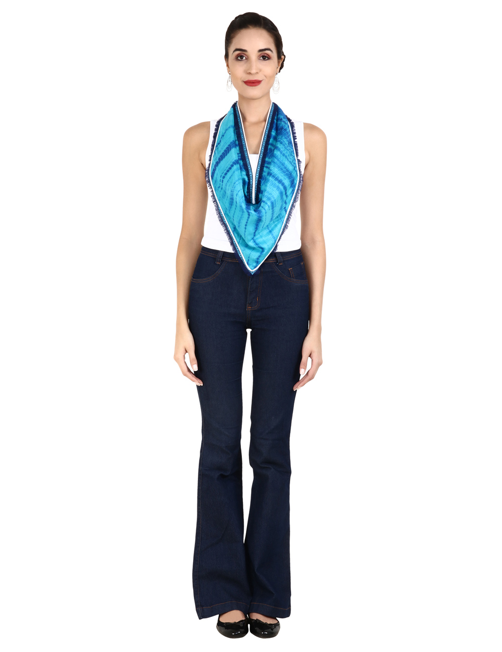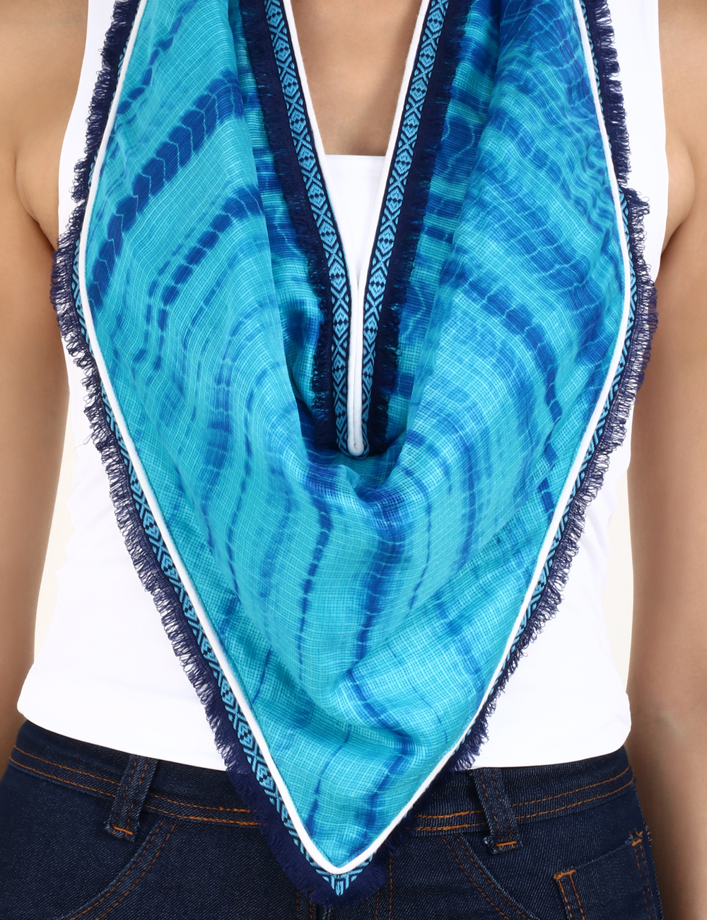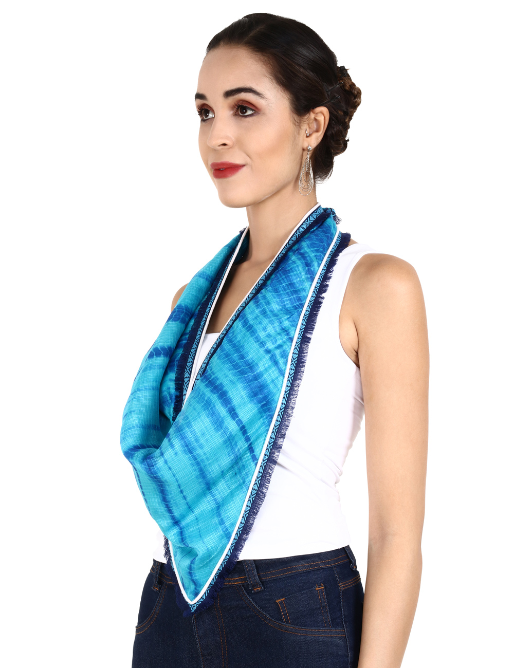 This scarf gives you the classic look that adds elegance to your everyday outfits. This is a One of a Kind handmade scarf made of chanderi fabric with rayon and satin lining. It also has blue tasselled piping.