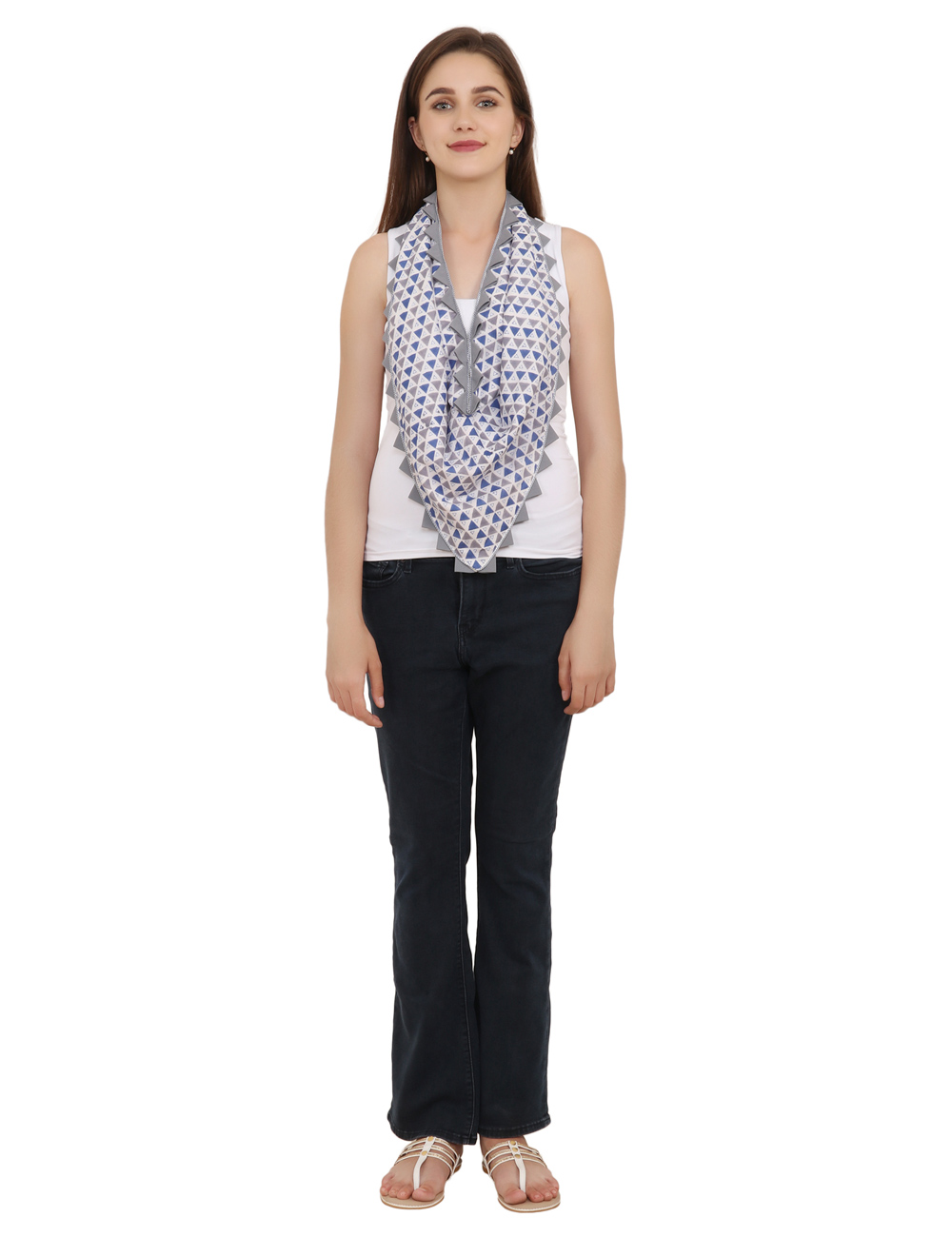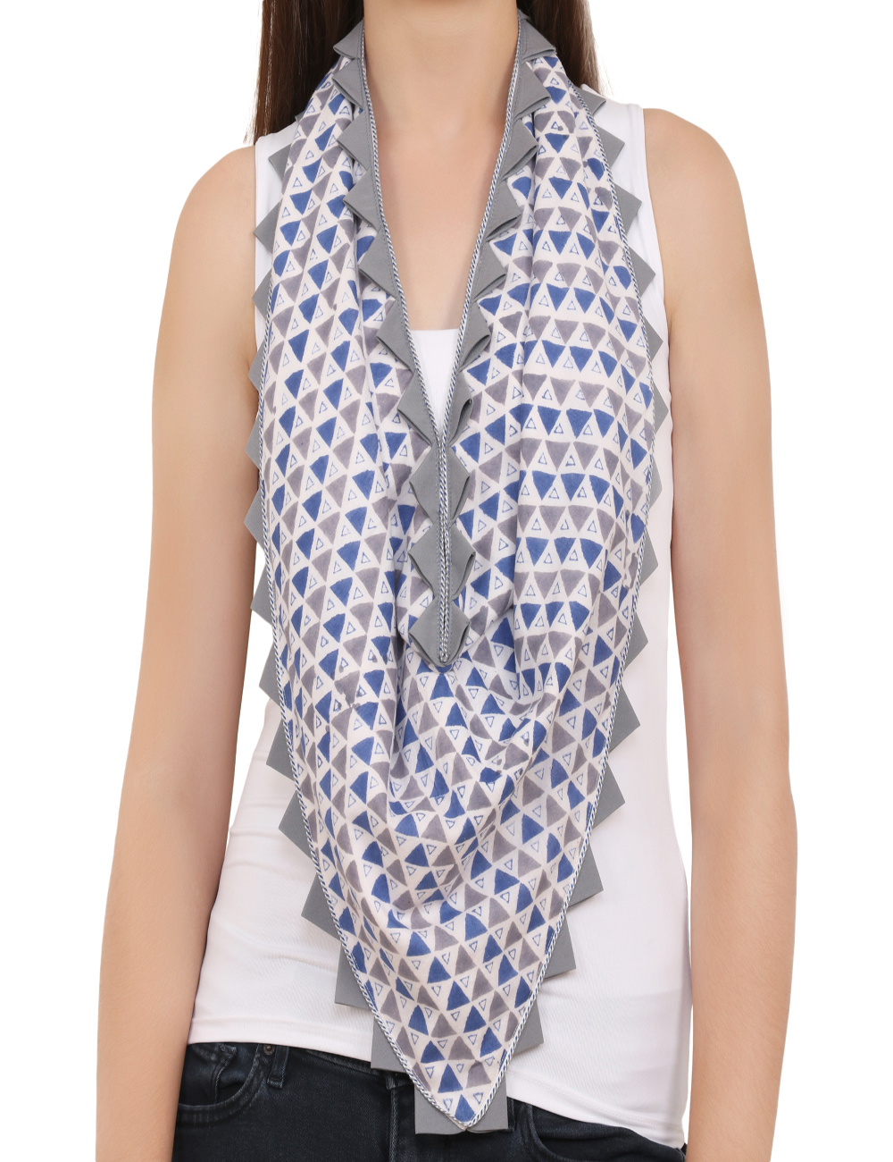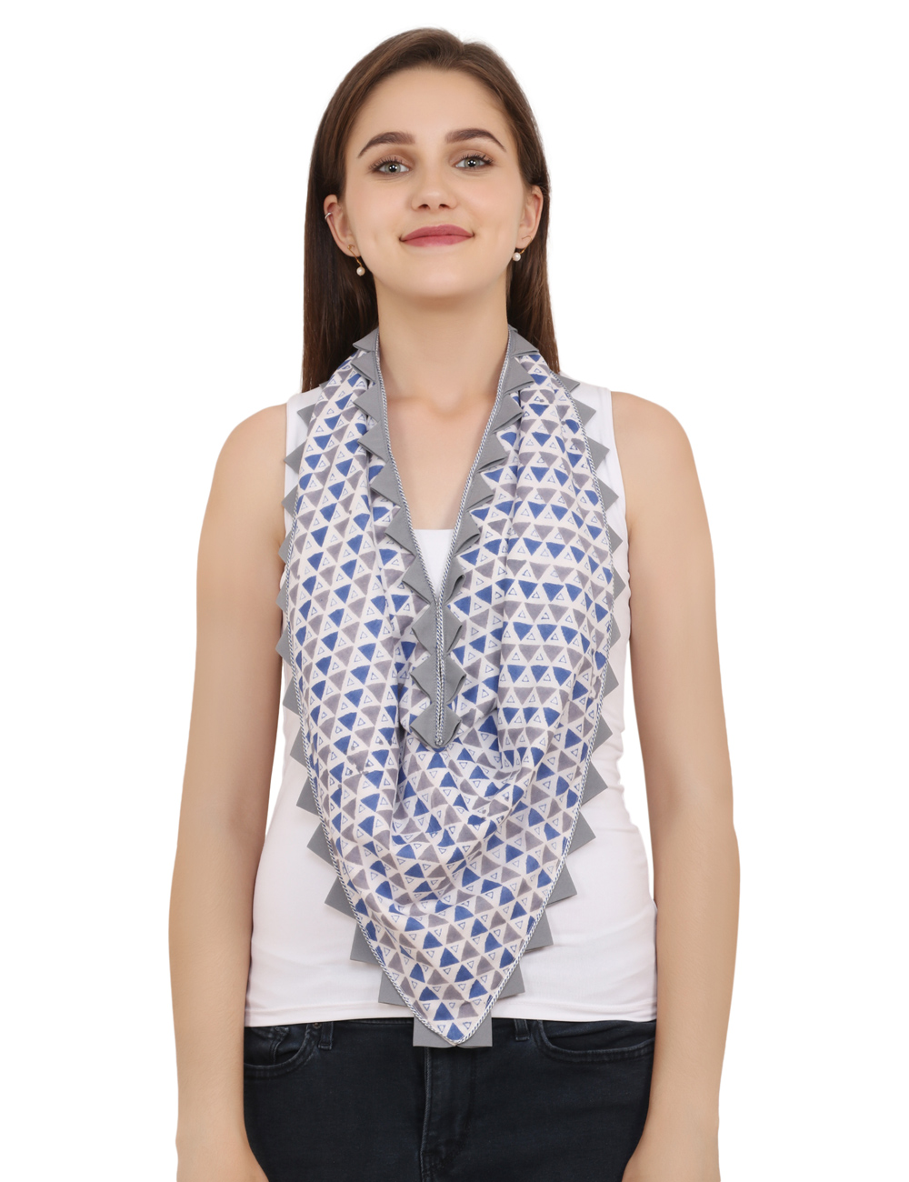 Made in cotton fabric, the banana crepe lining with blue & grey piping zig zag border which will accentuate any outfit.