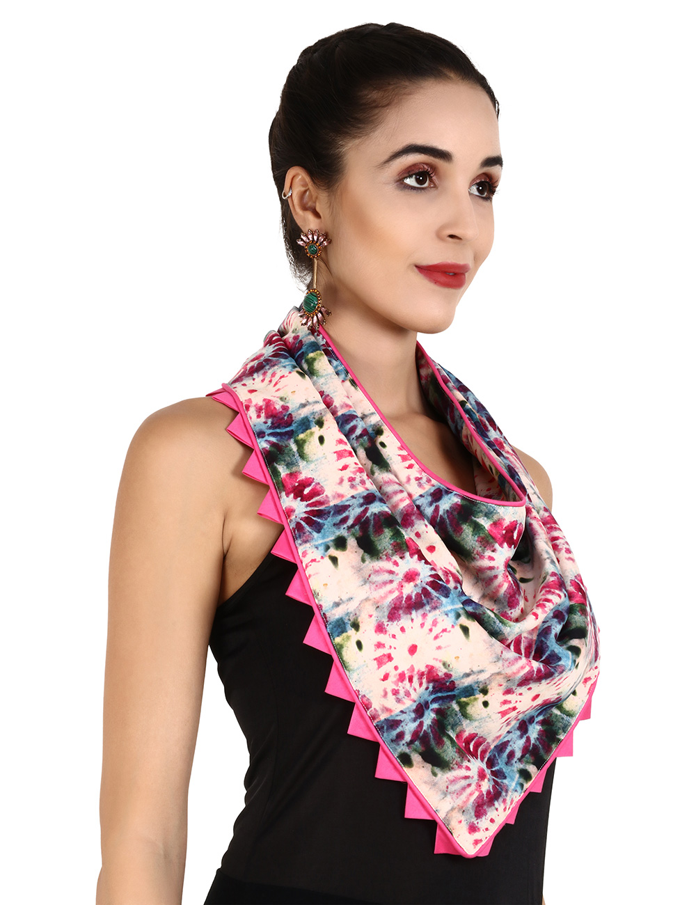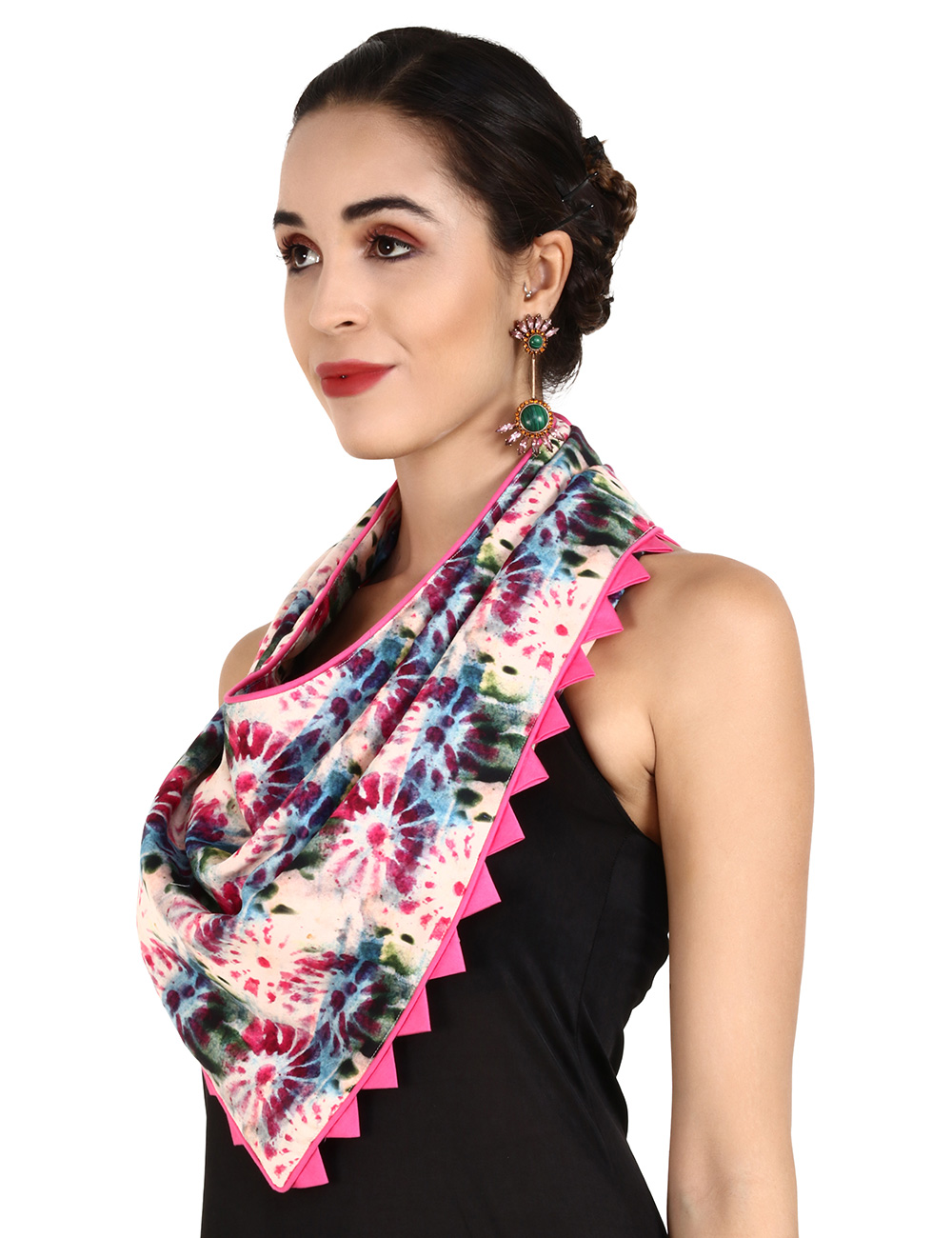 This vibrant One of a Kind handmade scarf is made of modal print fabric. It has rayon & satin lining Pair this scarf with an Indian outfit or with jeans and a t-shirt for equally fashionable results.