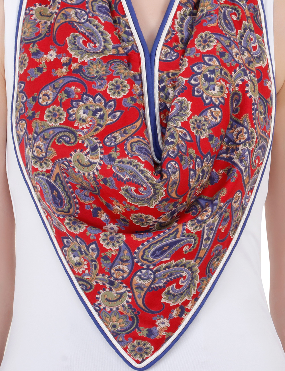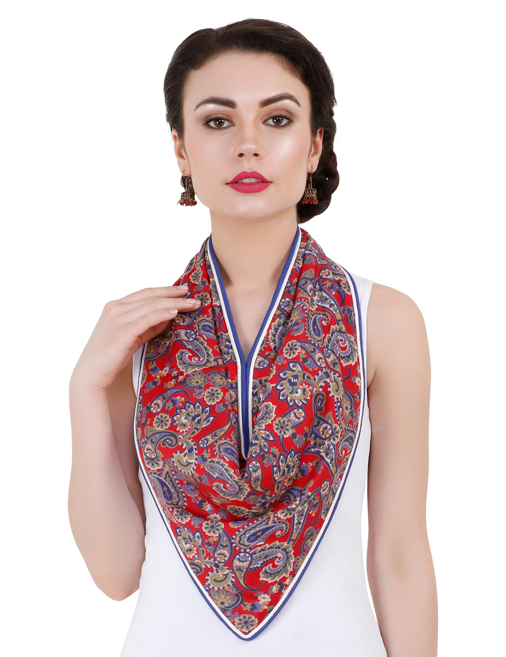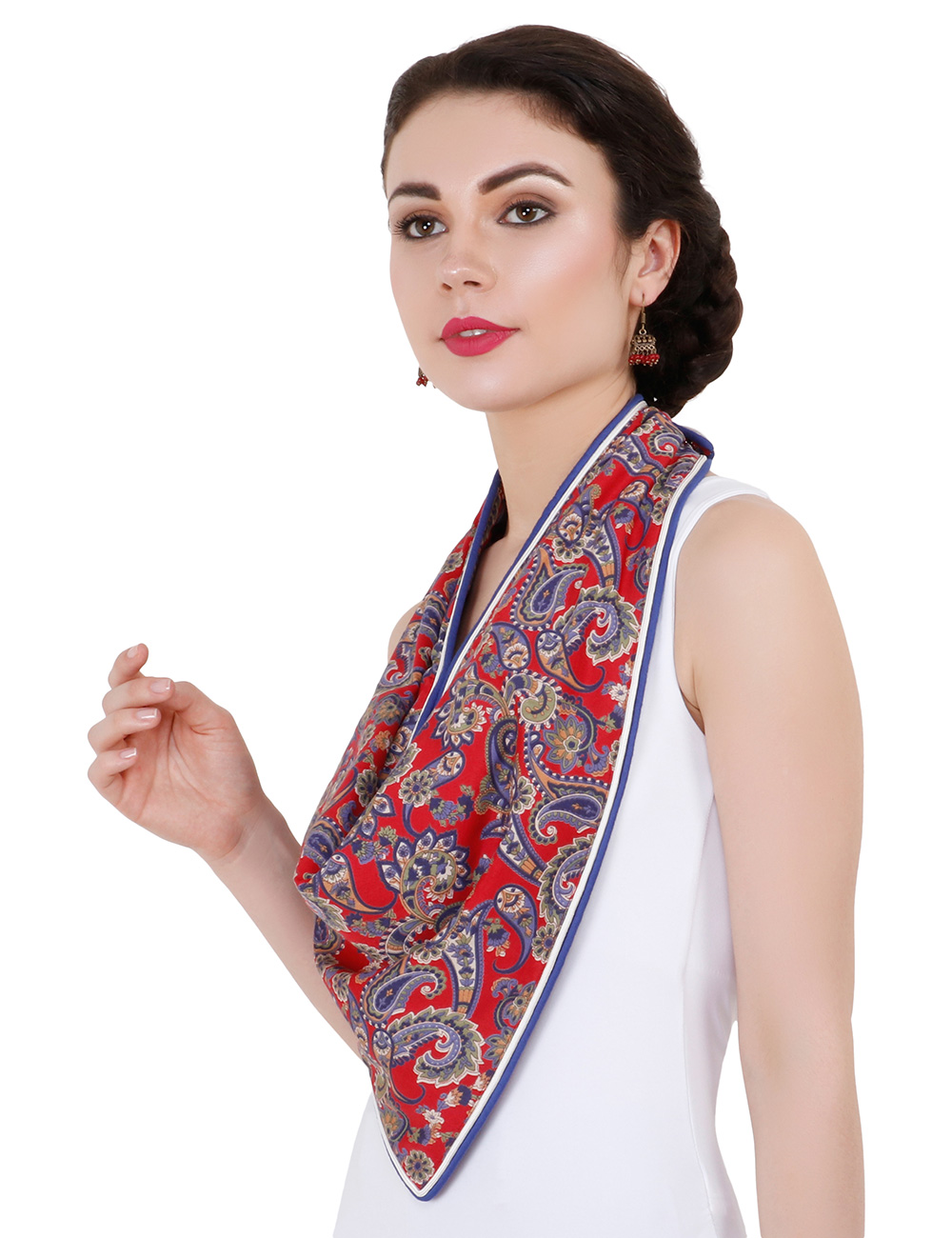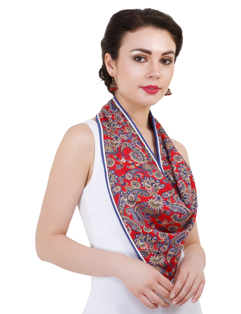 Elevate your everyday look with this One of a Kind handmade crepe silk scarf. It has rayon & satin lining with white piping.